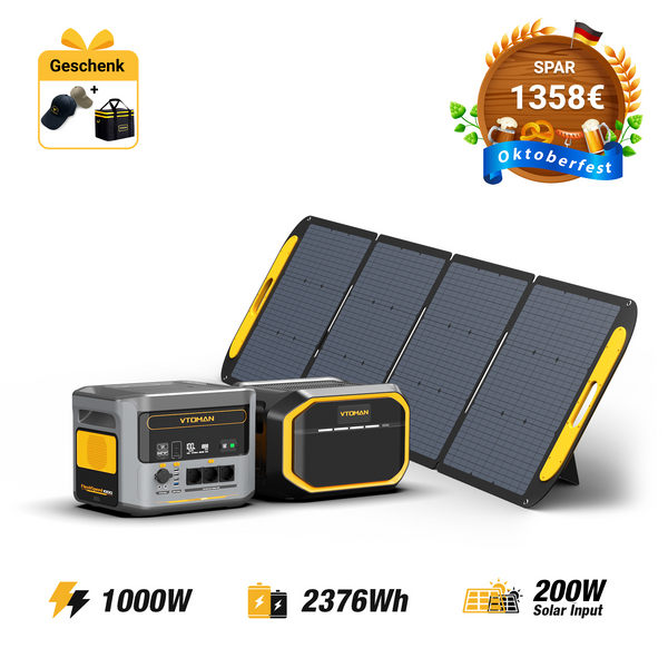 Kapazitätserweiterung: Verwenden Sie die VTOMAN FlashSpeed 1500 Extra Batterie (1548Wh), um die Batteriekapazität auf 2376Wh zu erhöhen.