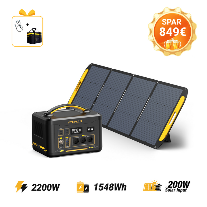 Erleben Sie grenzenlose Solarenergie, um Ihre Geräte mit VTOMAN Jump2200 zu betreiben. Diese innovative Lösung hilft nicht nur dabei, Energie zu sparen, sondern bietet auch Kosteneinsparungen. Mit einem maximalen Solareingang von 400W kann es an einem sonnigen Tag in nur 4 Stunden vollständig aufgeladen werden und ist somit äußerst effizient in der Nutzung erneuerbarer Energien.