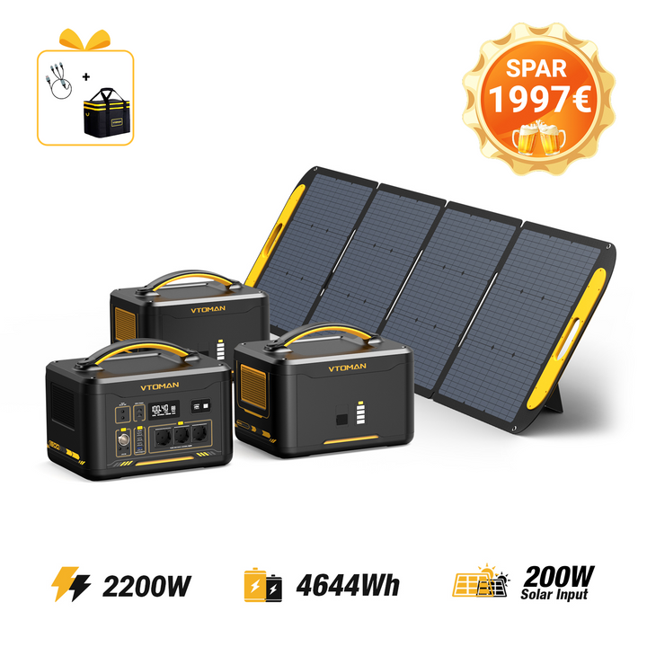 Erleben Sie grenzenlose Solarenergie, um Ihre Geräte mit VTOMAN Jump2200 zu betreiben. Diese innovative Lösung hilft nicht nur dabei, Energie zu sparen, sondern bietet auch Kosteneinsparungen. Mit einem maximalen Solareingang von 400W kann es an einem sonnigen Tag in nur 4 Stunden vollständig aufgeladen werden und ist somit äußerst effizient in der Nutzung erneuerbarer Energien.
